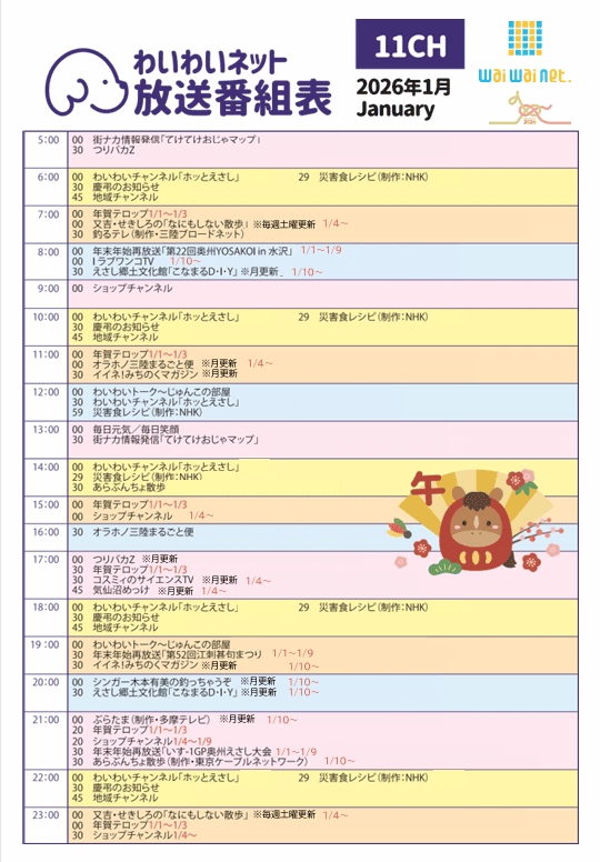 わいわいネット 1月の番組表