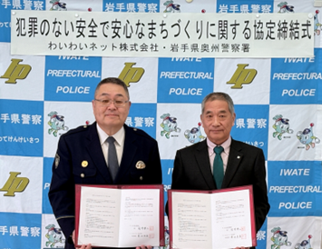 令和8年1月29日、わいわいネット株式会社(本社:岩手県奥州市、代表取締役:菊池直喜)は、地域の安全・安心の向上を目的として、岩手県奥州警察署と「犯罪のない安全で安心なまちづくりに関する協定」を締結いたしました。